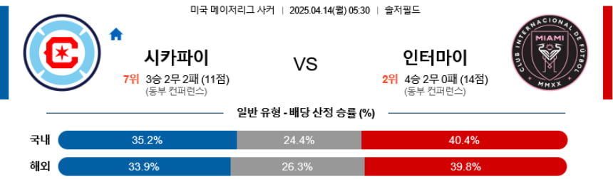 【미국 메이저리그 사커】04월14일 시카고 파이어 vs 인터 마이애미CF