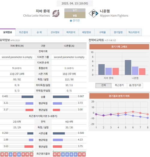 4월 15일 일본야구(NPB) 지바롯데 VS 니혼햄 [분석,추천]