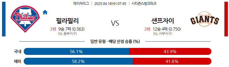 04월 16일 MLB 필라델피아 샌프란시스코 분석