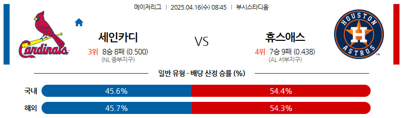 04월 16일 MLB 세인트루이스 휴스턴 분석