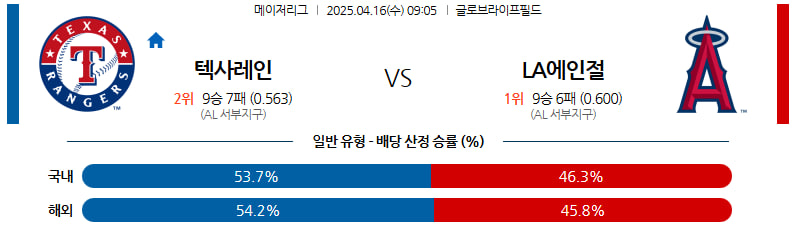 04월 16일 MLB 텍사스 LA에인절스 분석