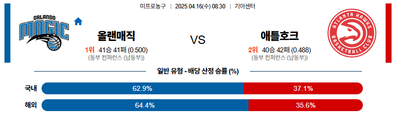 # 홈팀 : 올랜도 매직(41승41패, 동부 7위)