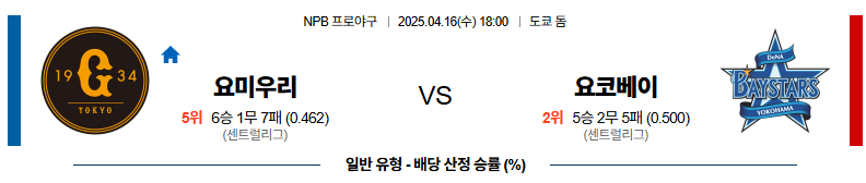 4월 16일 일본야구(NPB) 요미우리 VS 요코베이 [분석,추천]