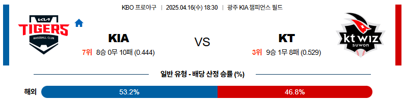 전날 경기는 그야말로 투수전의 백미라고도 할수 있는 경기였다. 결과는 KIA의 승리. KT 입장에선 에이스 투입 경기에서 패배했다는 후유증이 남을 것이다. 금년의 김도현을 고려한다면 KT 타선이 살아나긴 쉽지 않을듯. 반면 오원석은 충분히 KIA 타선이 공략할수 있는 투수고 현재 KT의 불펜은 박영현 외에는 조금 아슬아슬하다. 선발에서 앞선 KIA가 승리를 가져갈 것이다.
