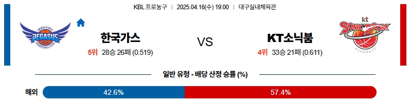 # 홈팀 : 대구 한국가스공사(28승26패, 정규시즌 5위)