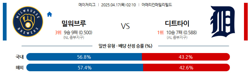04월 17일 MLB 밀워키 디트로이트 분석