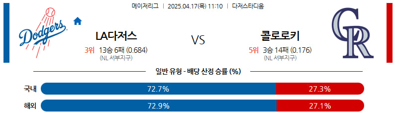 04월 17일 MLB LA다저스 콜로라도 분석