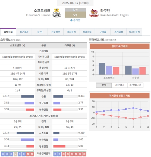 4월 17일 일본야구(NPB) 소프트뱅크 VS 라쿠텐 [분석,추천]