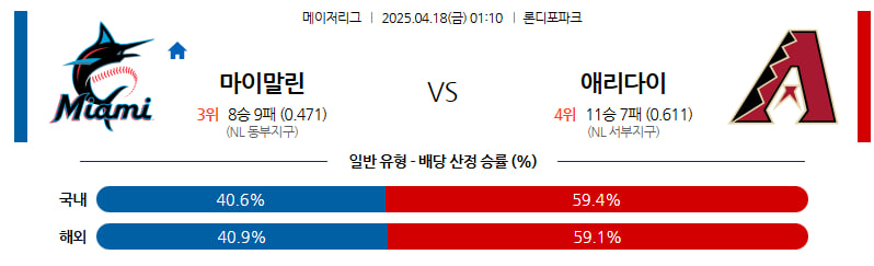 04월 18일 MLB 마이애미 애리조나 분석