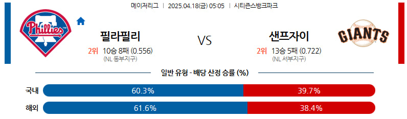 04월 18일 MLB 필라델피아 샌프란시스코 분석