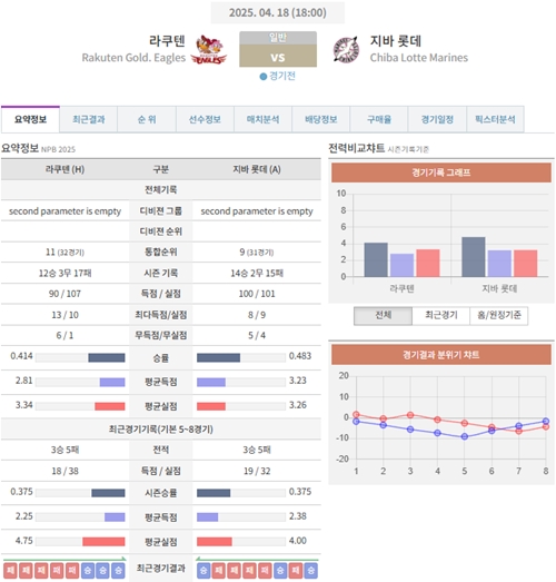4월 18일 최신 일본야구(NPB) 경기 종합 분석 및 예상스코어 공유합니다.