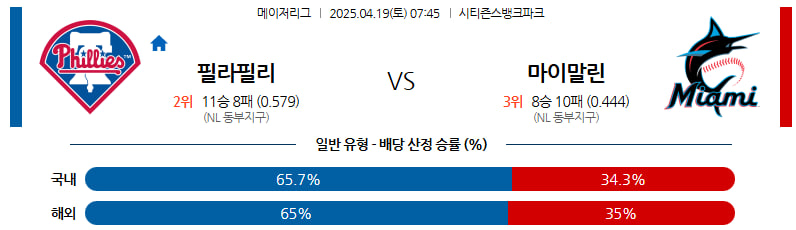 04월 19일 MLB 필라델피아 마이애미 분석