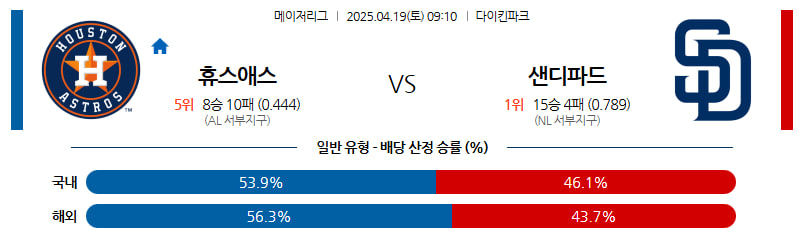 04월 19일 MLB 휴스턴 샌디에이고 분석