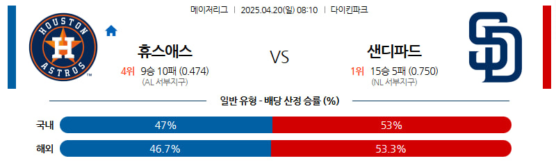 04월 20일 MLB 휴스턴 샌디에이고 MLB분석