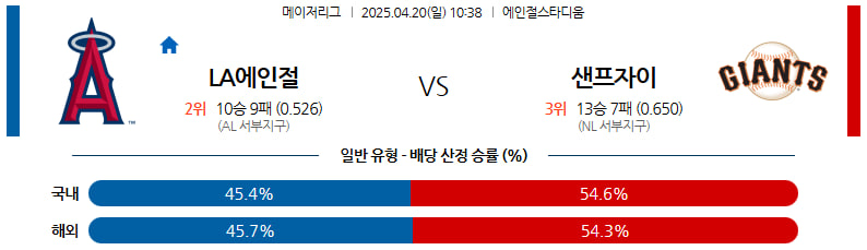 04월 20일 MLB LA에인절스 샌프란시스코 분석