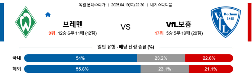 【분데스리가】04월19일 베르더브레멘vsVFL보훔