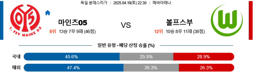 【분데스리가 】04월19일 마인츠05vs볼프스부르크