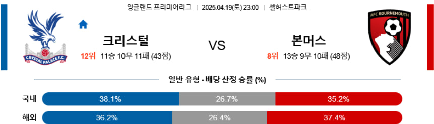 【EPL 】04월19일 크리스탈팰리스vsAFC본머스