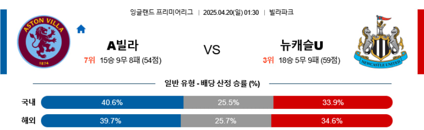 【EPL 】 04월20일 애스턴빌라vs뉴캐슬
