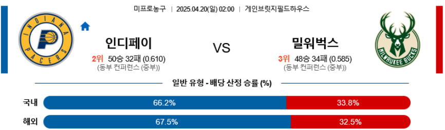# 홈팀 : 인디애나 페이서스(50승32패, 동부커퍼런스 4위)