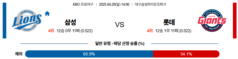 04월 20일 KBO 삼성 : 롯데 KBO분석