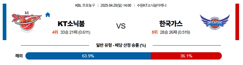 # 홈팀 : 수원 KT 소닉붐(33승21패, 정규시즌 4위)