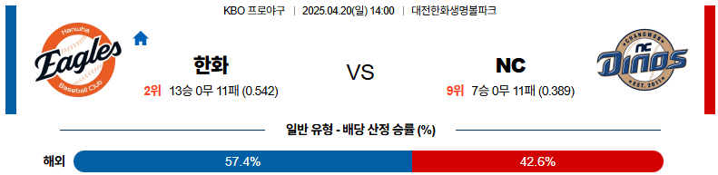 04월 20일 KBO 한화 : NC KBO분석
