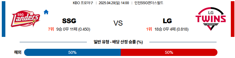 비로 인해 무려 3시간 가까이 기다렸던 경기는 결국 LG의 승리로 막을 내렸다. 이런 경기를 패배한 SSG의 피로감은 그야말로 2배. 김주온은 1군에서 통할지가 조금 의문이긴 한데 문제는 앤더슨이 낮 경기에 극도로 약한 투수라는 점이다. 그리고 스태미너 문제까지 생각한다면 불펜에서 LG가 우위를 점유하고 역전승을 하는 그림이 그려진다. 후반에 강한 LG가 승리를 가져갈 것이다.