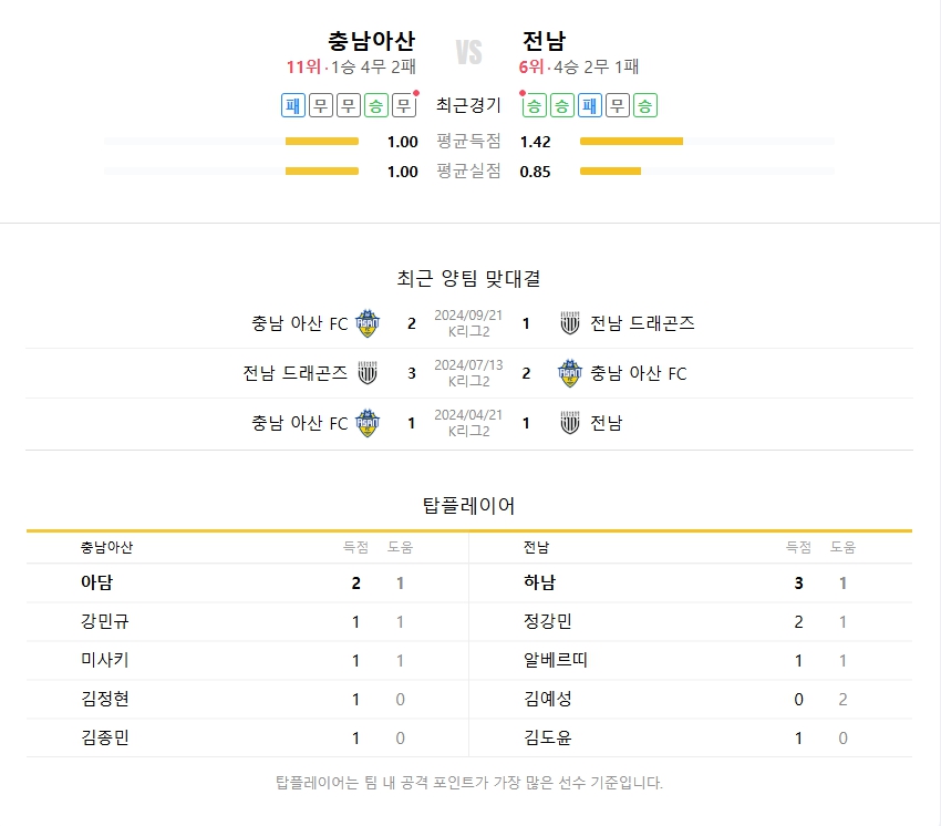 04.20 [K리그] 충남아산 VS 전남드래곤즈 분석 및 프리뷰 !