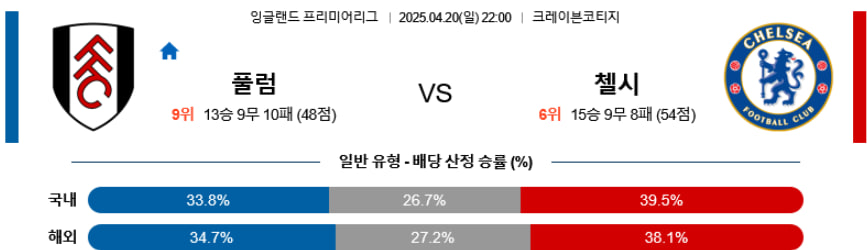 【 EPL 】04/20(일) 풀럼vs첼시