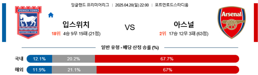 【 EPL 】04/20(일) 입스위치타운vs아스날FC