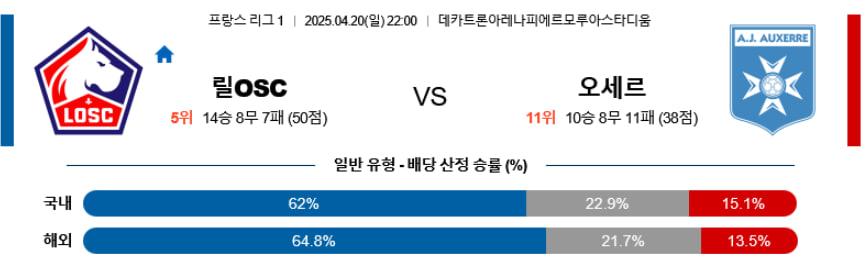 【리그앙 】04/20(일) 릴OSCvsAJ오세르