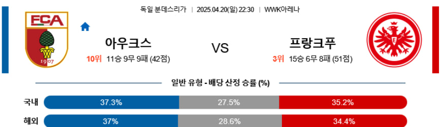 【분데스리가】04/20(일) 아우크스부르vs프랑크푸르트