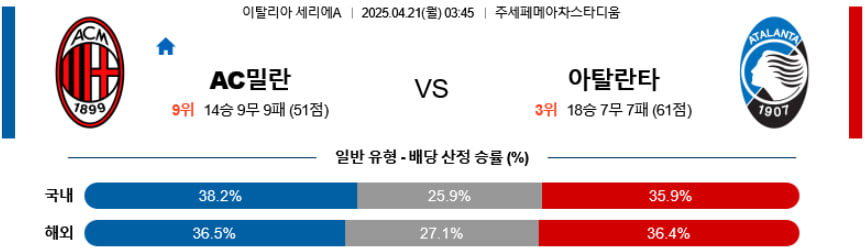 【세리에A】04/21(월) AC밀란vs아탈란타