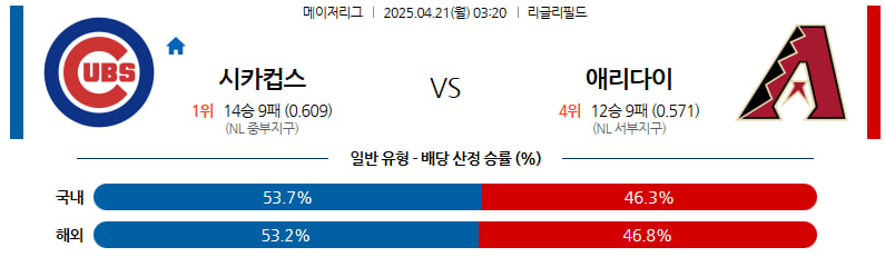 04월 21일 MLB 시카고C 애리조나 분석