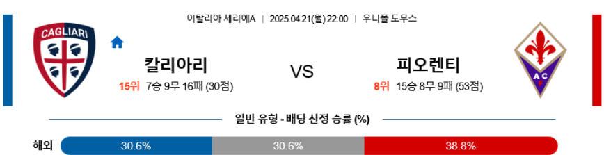 【세리에A】04/21(월) 칼리아리vs피오렌티나