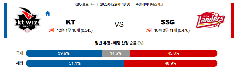 04월 22일 KBO KT : SSG KBO분석