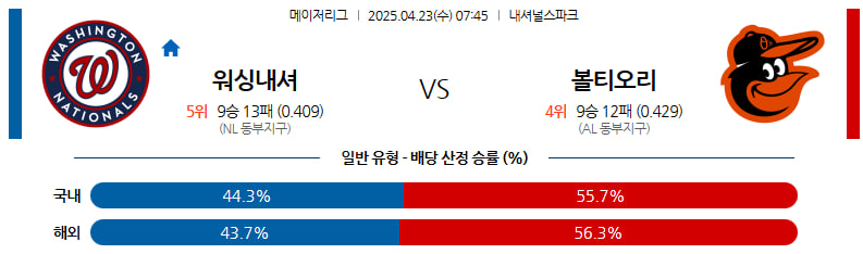 04월 23일 MLB 워싱턴 볼티모어 분석