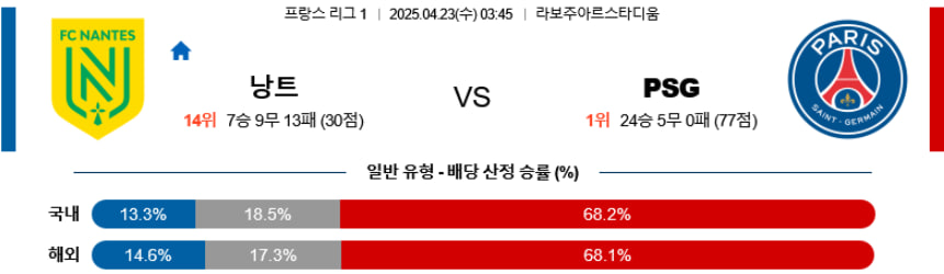 【리그앙】04/23(수) FC낭트vs파리생제르맹(PSG)