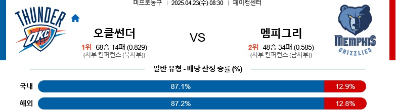 멤피스를 요리하는 방법을 잘 알고 있는 오클라호마가 된다. 또한, 오클라호마의 다득점 예상되는 만큼 오버 경기다.