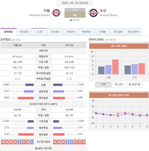 04월 23일 KBO 롯데 : 한화 KBO분석