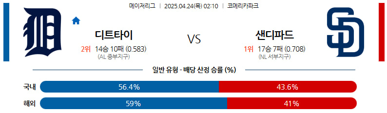04월 24일 MLB 디트로이트 샌디에이고 분석