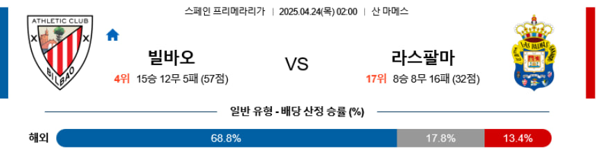 【라리가 】04/24(목) 아틀레틱빌바오vs라스팔마스