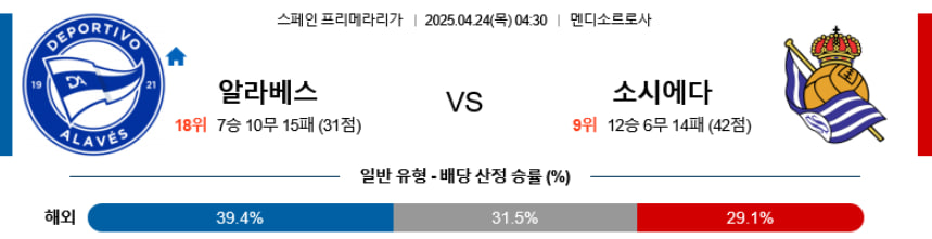 【라리가 】04/24(목) 데포르티보알라베스vs레알소시에다드