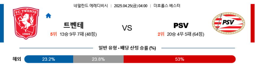 【에레디비시 】04/25(금) 트벤테vsPSV에인트호벤