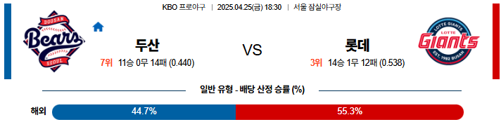 04월 25일 KBO 두산 : 롯데 KBO분석