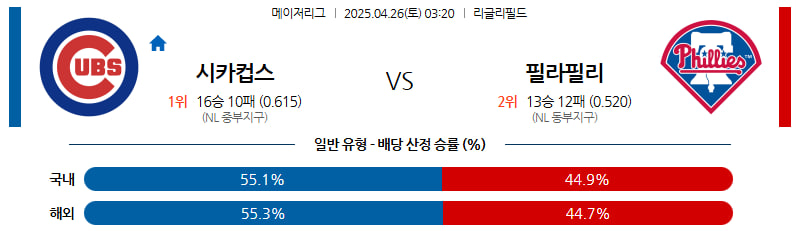 04월 26일 MLB 시카고C 필라델피아 분석