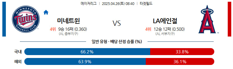 04월 26일 MLB 미네소타 LA에인절스 분석
