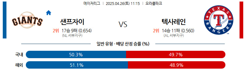 04월 26일 MLB 샌프란시스코 텍사스 분석