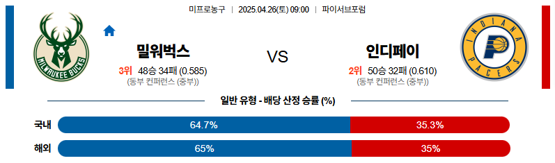 【NBA 】04/26(토) 밀워키 vs 인디애나